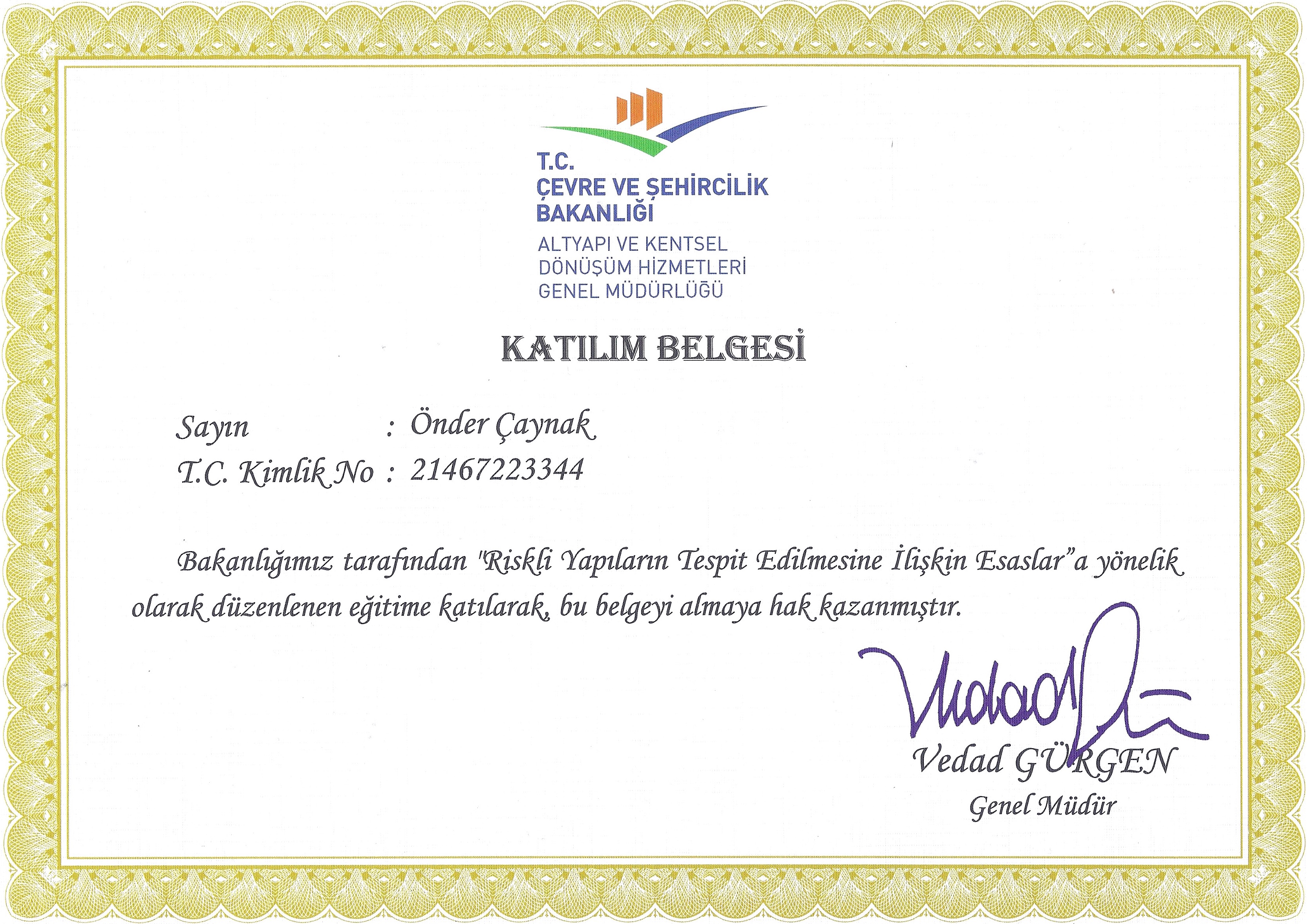 Ayrıca firmamızın ortağı Önder Çaynak, 6306 Sayılı Afet Riski Altındaki Alanların Dönüştürülmesi hakkındaki kanun çerçevesinde ‘Riskli Yapı Tespiti’ yapma belgesine de sahiptir.